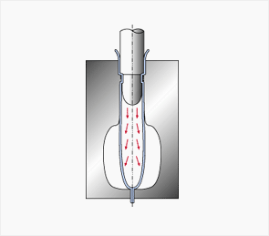 第六步 :吹胀成型腔形状后,在此状态下进行冷却。